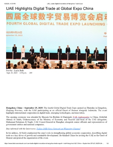 9/26/25, 4:33 PM UAE Leads Digital Innovation at Hangzhou Trade Expo