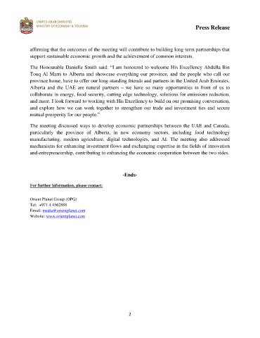 The Honourable Danielle Smith said: “I am honoured to welcome His Excellency Abdulla Bin