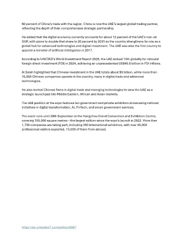 60 percent of China’s trade with the region. China is now the UAE’s largest global trading partner,