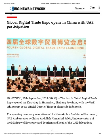9/26/25, 4:34 PM Global Digital Trade Expo opens in China with UAE participation