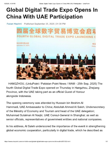 9/26/25, 4:34 PM Global Digital Trade Expo Opens In China With UAE Participation - UrduPoint