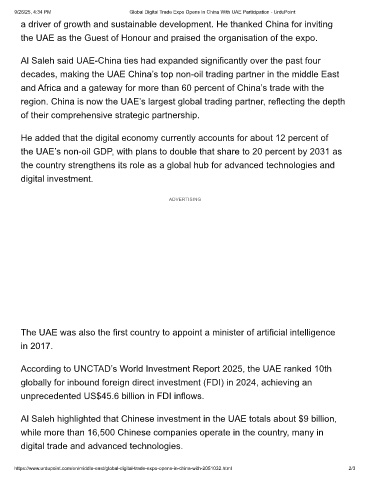 9/26/25, 4:34 PM Global Digital Trade Expo Opens In China With UAE Participation - UrduPoint