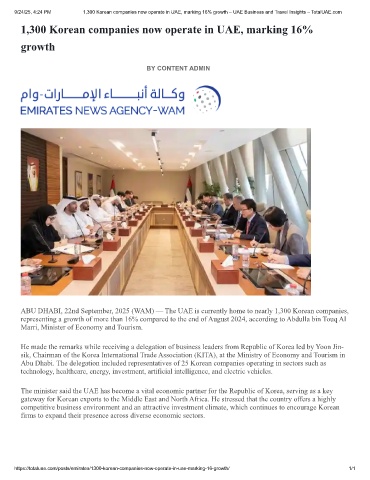 9/24/25, 4:24 PM 1,300 Korean companies now operate in UAE, marking 16% growth – UAE Business and Travel Insights – TotalUAE.com