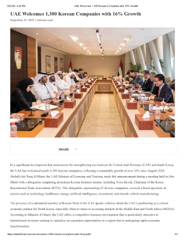9/24/25, 4:24 PM UAE Welcomes 1,300 Korean Companies with 16% Growth