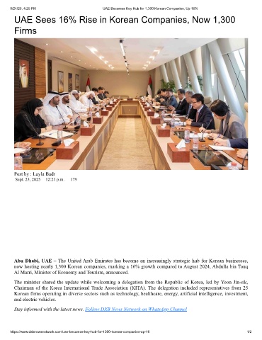 9/24/25, 4:25 PM UAE Becomes Key Hub for 1,300 Korean Companies, Up 16%