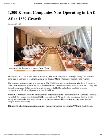 9/24/25, 4:25 PM 1,300 Korean Companies Now Operating in UAE After 16% Growth – Arab Times News