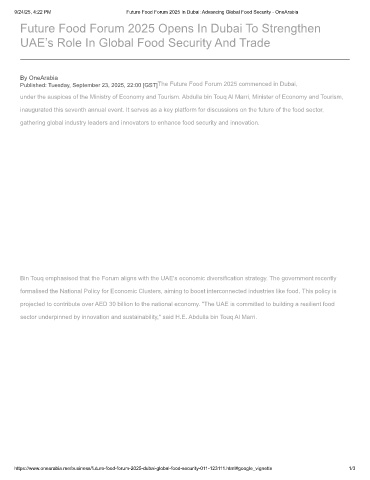 9/24/25, 4:22 PM Future Food Forum 2025 In Dubai: Advancing Global Food Security - OneArabia