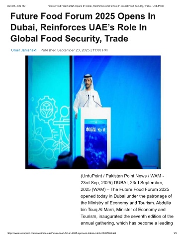 9/24/25, 4:22 PM Future Food Forum 2025 Opens In Dubai, Reinforces UAE’s Role In Global Food Security, Trade - UrduPoint