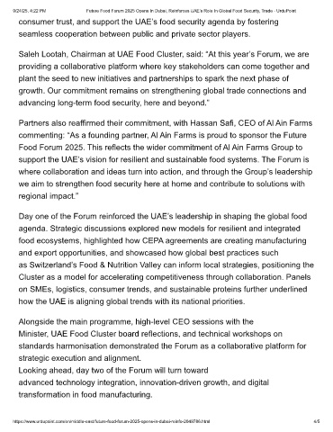 9/24/25, 4:22 PM Future Food Forum 2025 Opens In Dubai, Reinforces UAE’s Role In Global Food Security, Trade - UrduPoint