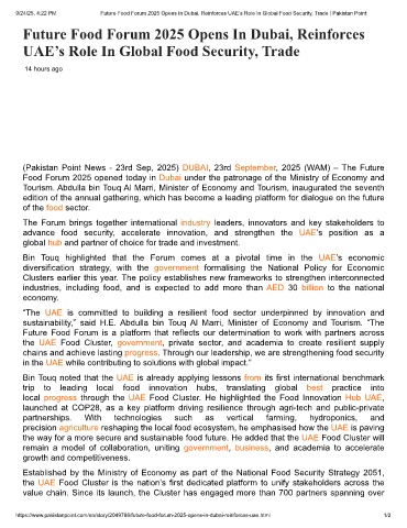 9/24/25, 4:22 PM Future Food Forum 2025 Opens In Dubai, Reinforces UAE’s Role In Global Food Security, Trade | Pakistan Point
