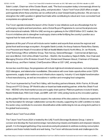 The Future Food Forum 2024 is hosted by the UAE Food & Beverage Business Group; it aims to