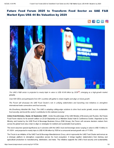 9/23/25, 4:54 PM Future Food Forum 2025 to Transform Food Sector as UAE F&B Market Eyes US$ 44 Bn Valuation by 2029
