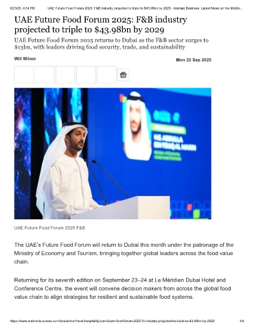 9/23/25, 4:54 PM UAE Future Food Forum 2025: F&B industry projected to triple to $43.98bn by 2029 - Arabian Business: Latest News on the Middle…