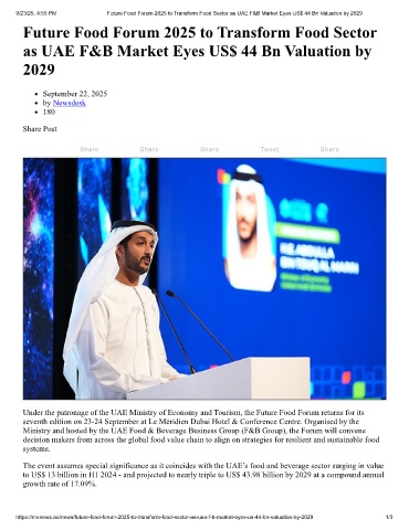 9/23/25, 4:55 PM Future Food Forum 2025 to Transform Food Sector as UAE F&B Market Eyes US$ 44 Bn Valuation by 2029