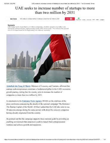 https://economictimes.indiatimes.com/tech/startups/uae-seeks-to-increase-number-of-startups-to-more-than-two-million-by-2031/articleshow/12403701… 1/1