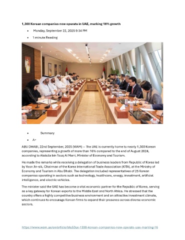 ABU DHABI, 22nd September, 2025 (WAM) -- The UAE is currently home to nearly 1,300 Korean