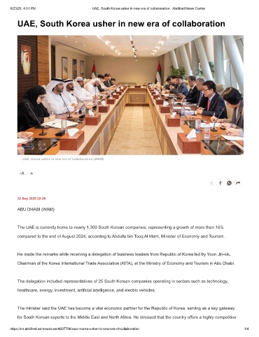 9/23/25, 4:51 PM UAE, South Korea usher in new era of collaboration - Aletihad News Center