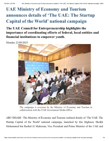 9/23/25, 5:06 PM UAE Ministry of Economy and Tourism announces details of ‘The UAE: The Startup Capital of the World’ national campaign | MEO