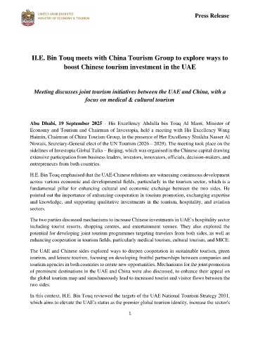In this context, H.E. Bin Touq reviewed the targets of the UAE National Tourism Strategy 2031,