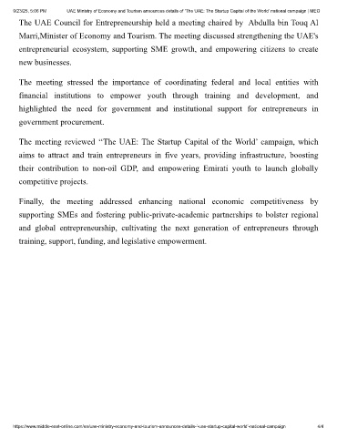 9/23/25, 5:06 PM UAE Ministry of Economy and Tourism announces details of ‘The UAE: The Startup Capital of the World’ national campaign | MEO