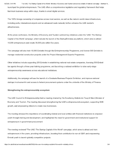 9/23/25, 3:41 PM ‘The UAE: The Startup Capital of the World’: Ministry of Economy and Tourism announces details of national campaign - Aletihad N…