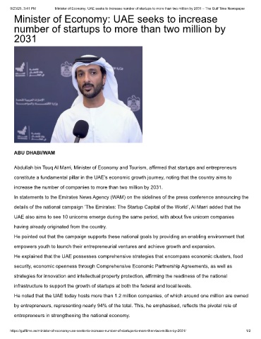 https://gulftime.ae/minister-of-economy-uae-seeks-to-increase-number-of-startups-to-more-than-two-million-by-2031/ 1/2