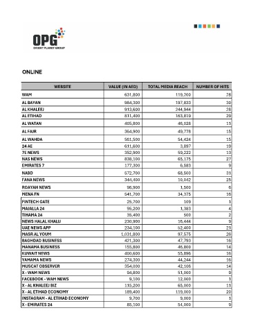 WEBSITE VALUE (IN AED) TOTAL MEDIA REACH NUMBER OF HITS