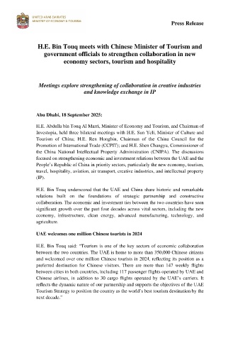 H.E. Bin Touq said: “Tourism is one of the key sectors of economic collaboration