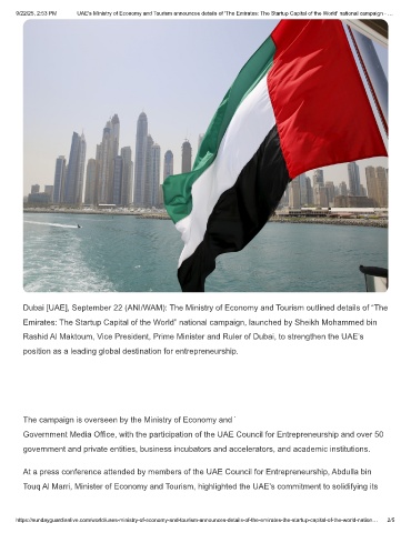 9/22/25, 2:53 PM UAE's Ministry of Economy and Tourism announces details of 'The Emirates: The Startup Capital of the World' national campaign - …