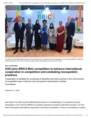 https://www.zawya.com/en/press-release/companies-news/uae-joins-brics-mou-competition-to-enhance-international-cooperation-in-competition-and-c… 1/3