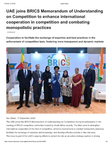 The UAE joined the BRICS Memorandum of Understanding on Competition during its participation in the