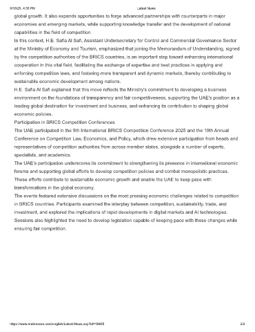 The UAE participated in the 9th International BRICS Competition Conference 2025 and the 19th Annual