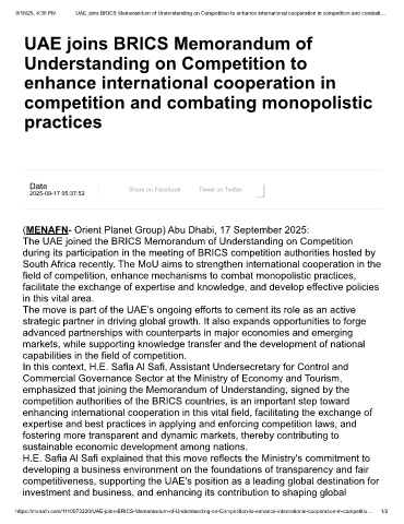https://menafn.com/1110073220/UAE-joins-BRICS-Memorandum-of-Understanding-on-Competition-to-enhance-international-cooperation-in-competitio… 1/2