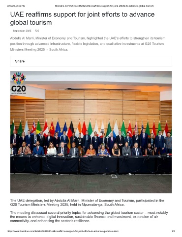 9/16/25, 2:42 PM ttnonline.com/Article/388282/UAE-reaffirms-support-for-joint-efforts-to-advance-global-tourism
