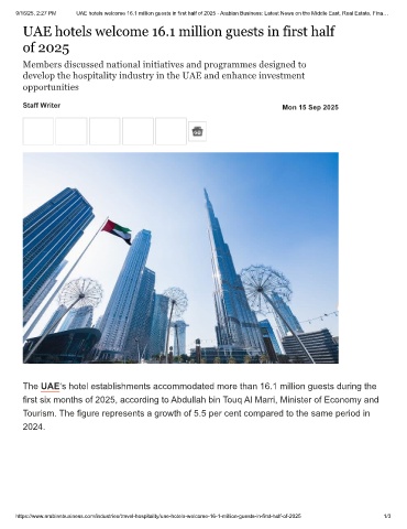9/16/25, 2:27 PM UAE hotels welcome 16.1 million guests in first half of 2025 - Arabian Business: Latest News on the Middle East, Real Estate, Fina…