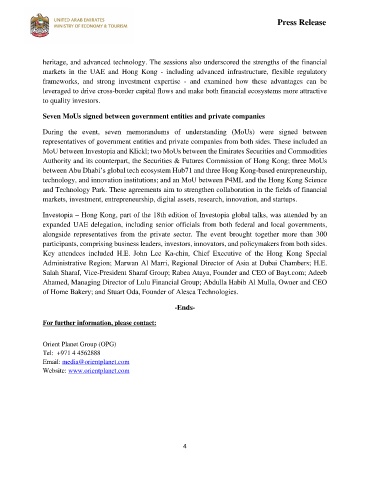 MoU between Investopia and Klickl; two MoUs between the Emirates Securities and Commodities