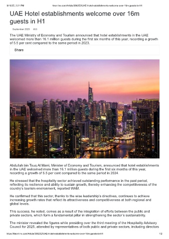 9/16/25, 2:21 PM ttnonline.com/Article/388252/UAE-Hotel-establishments-welcome-over-16m-guests-in-H1