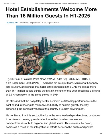 9/16/25, 2:22 PM Hotel Establishments Welcome More Than 16 Million Guests In H1-2025 - UrduPoint