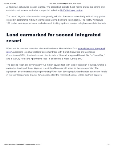 Wynn and its partners have also allocated land on Al Marjan Island for a potential second integrated
