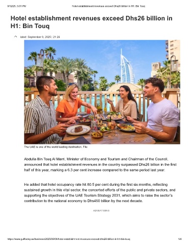 https://www.gulftoday.ae/business/2025/09/09/hotel-establishment-revenues-exceed-dhs26-billion-in-h1-bin-touq 1/4