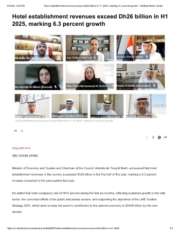 9/12/25, 5:02 PM Hotel establishment revenues exceed Dh26 billion in H1 2025, marking 6.3 percent growth - Aletihad News Center