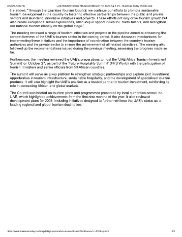 https://www.businesstoday.me/hospitality/uae-hotel-revenues-hit-aed26-billion-in-h1-2025-up-6-3/ 2/2