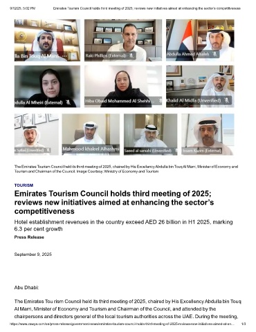 9/12/25, 5:02 PM Emirates Tourism Council holds third meeting of 2025; reviews new initiatives aimed at enhancing the sector’s competitiveness