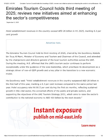 9/12/25, 5:03 PM Emirates Tourism Council holds third meeting of 2025; reviews new initiatives aimed at enhancing the sector’s competitiveness - Mi…