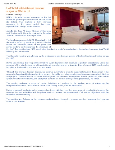9/12/25, 5:04 PM UAE hotel establishment revenue surges to $7bn in H1