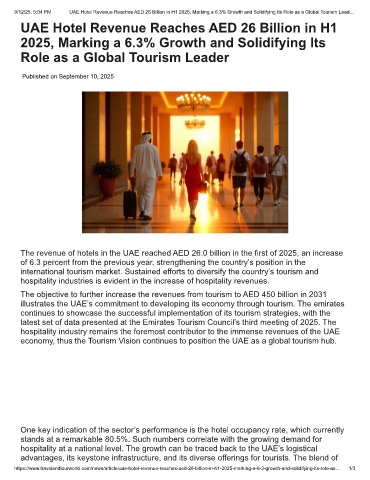 9/12/25, 5:04 PM UAE Hotel Revenue Reaches AED 26 Billion in H1 2025, Marking a 6.3% Growth and Solidifying Its Role as a Global Tourism Lead…