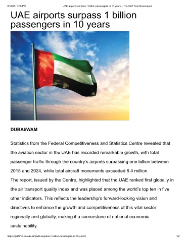 https://gulftime.ae/uae-airports-surpass-1-billion-passengers-in-10-years/ 1/2