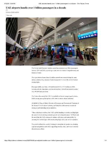 9/12/25, 5:08 PM UAE airports handle over 1 billion passengers in a decade - The Filipino Times