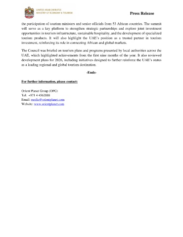 tourism products. It will also highlight the UAE’s position as a trusted partner in tourism