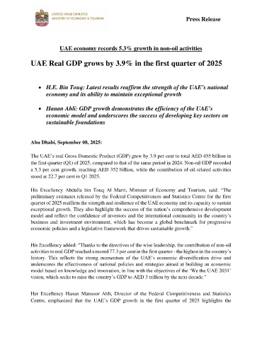 quarter of 2025 reaffirm the strength and resilience of the UAE economy and its capacity to sustain